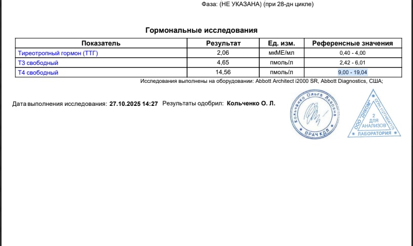 Сдала анализы на гормоны щитовидной железы (ТТГ, Т4 и Т3)