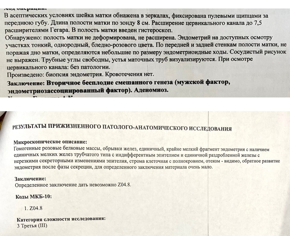 24.09 делала гистероскопию, брали биопсию эндометрия . 24.10 приходит заключение без заключения🤯🤯: материала очень мало, заключение дать невозможно . По гистере заключение: аденомиоз Позвонила в роддом, оказывается такое имеет место быть, иногда материал растворяется в формалине 🤔