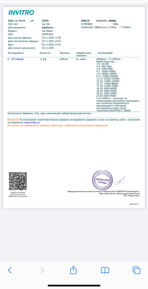 Ждем дня Х (Признаки беременности / Тесты)Здравствуйте девочки, планируем с мужем беременность. Месячные у меня не регулярные, последний день месячных был 19.10.25, с 26.10 был половой акт по сегодняшний день с окончанием в меня. 30.10, была овуляция и что в день овуляции, что после были половые акты с окончанием в меня по 2-3 раза. Сегодня сдала кровь на хгч, результат <1.2 что говорит об отсутствии беременности. Шансов получается вообще нет или можно сдать еще после задержки месячных следующих? если конечно она наступит. Со дня овуляции конечно еще мало прошло, но надеялись, что с 26.10 может зачатие произошло ? так как первая дочь у нас вообще на следующий день после месячных зачалась.