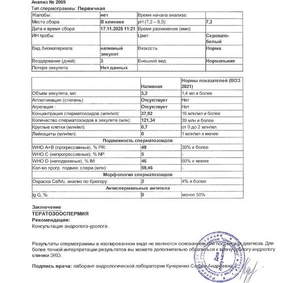 сг /анализы/ обследования для мужчинДевочки, пережила недавно замершую, вероятнее всего из-за ХА (плодное яйцо меньше срока). Сдала свои анализы, всё в норме. Пришла сг мужа - 2% морфологии. Врачи говорят вероятнее всего из-за этого случилась замершая. У нас уже есть ребёнок, родила в 21, сейчас нам по 23 года. Я в ужасе, неужели естественным путем теперь невозможно и будут замершие?