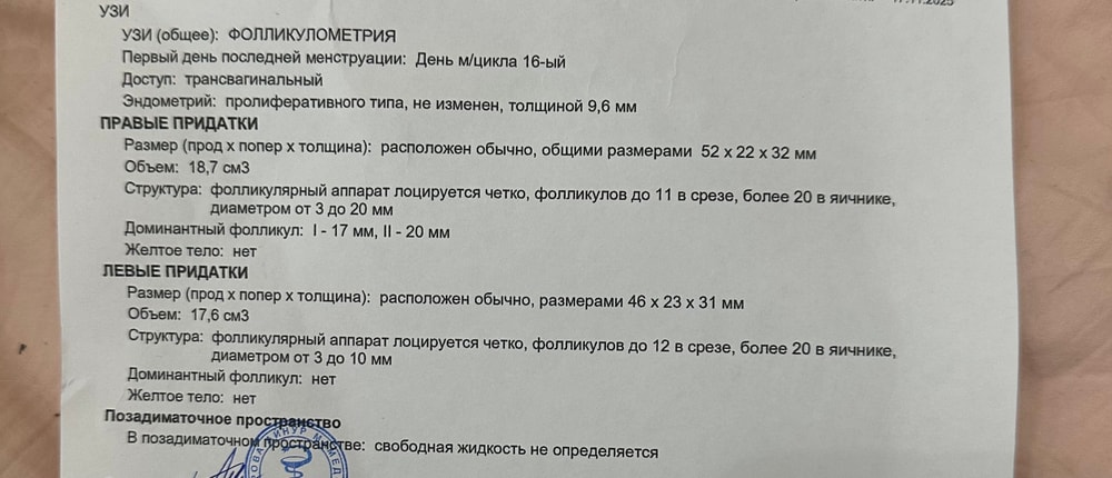 это мой первый цикл на стимуляции. Стимулировалась клостилбегитом по 1т 2р в день со 2 по 6 день цикла, больше ничего не назначали, ходила на узи на 10дц, гинеколог сказала что ничего не выросло и эндометрий никакой, будем увеличивать дозу в след цикле. Я конечно очень расстроилась, но ладно. Сходила на 16 дц на фолликулометрию в другую клинику (мой доктор сейчас в отъезде, не могу к ней попасть), а там в ПЯ два ДФ 17 и 20мм, и эндометрий 9,6мм. Я конечно же очень обрадовалась что все таки ответ на стимуляцию у меня есть, но теперь очень переживаю, так как я не могу связаться со своим гинекологом. Я к ней попаду только через 5 дней, это будет уже 21дц, будет поздно для укола. Смогут ли фолликулы совулировать сами? Сама без назначения боюсь что-то делать, но и не хочется так глупо потерять эти фолликулы🤦🏼♀️