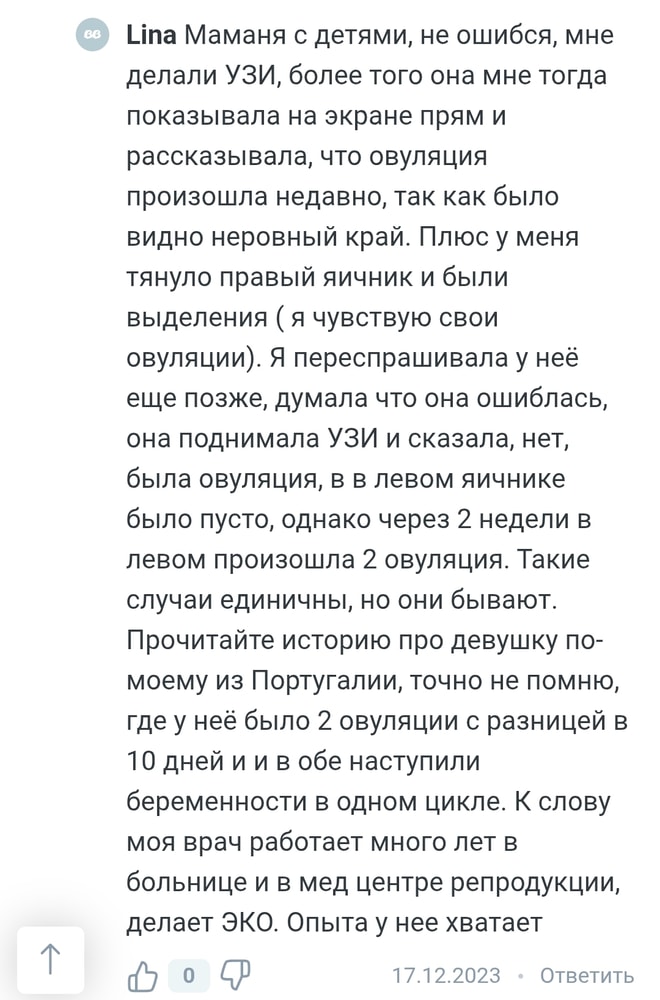На ББ таких случаев я встретила 2. К сожалению, второй не нашла, хотя читала его в виде отдельного поста. Но случай с подтверждённой первой овуляцией и беременностью от второй перед месячными прикладываю в виде скринов. Захотите - найдите пользователя пообщайтесь. И смените уже свой тон общения - понятно, что травматизм лезет из всех щелей, но это довольно успешно корректируется, попробуйте.