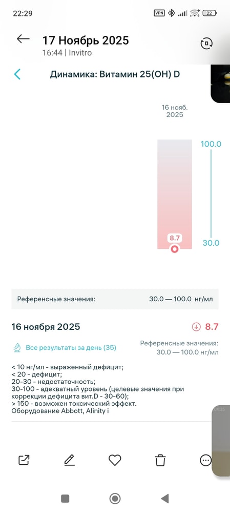 Но про витамин d никогда не думала, прочитала что при выраженных дефицитах могут назначать конские дозировки, как-то страшно принимать несколькими тысячами единиц, у кого-нибудь был ещё настолько низкий Д? Чем лечили? как лечили? Как изменилось ваше самочувствие после нормализации ?