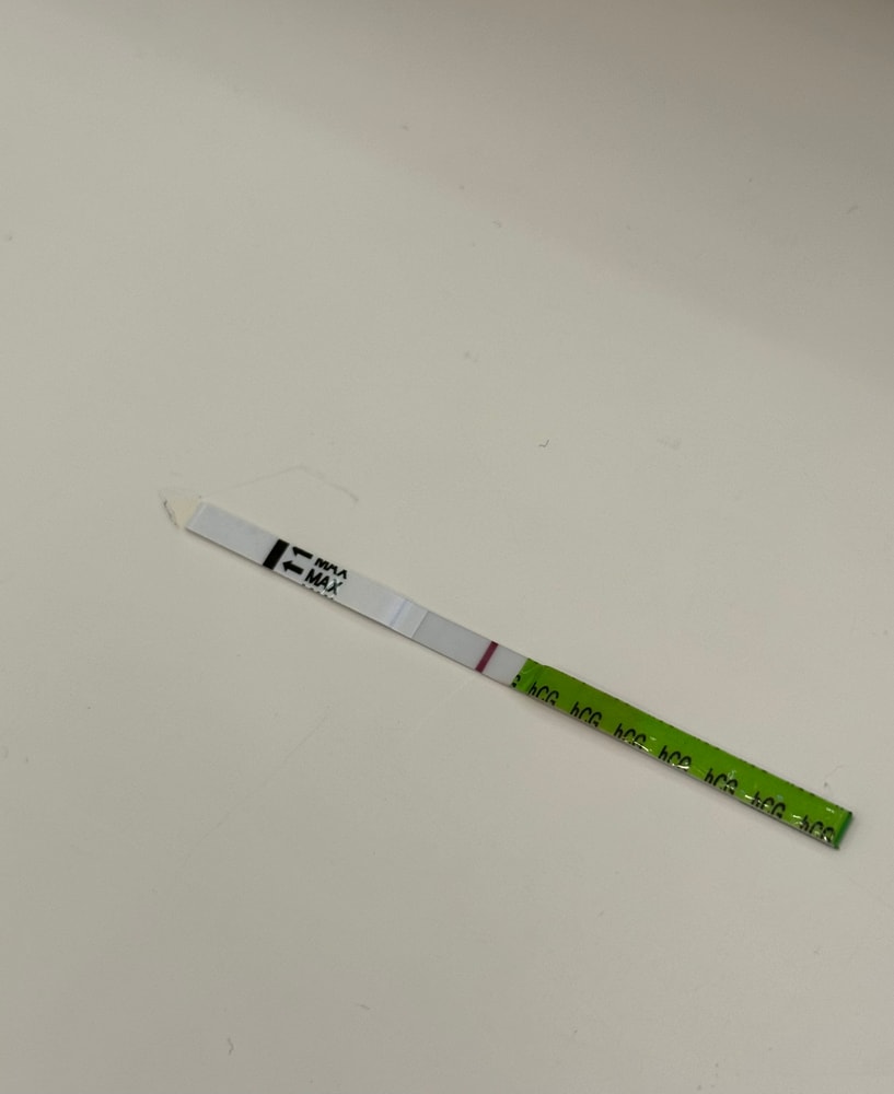 То что Вы приняли за полоску, не полоска. Вторая должна быть не далеко от первой, а у вас тень полоски году тест начинается, это просто потёк к сожалению.