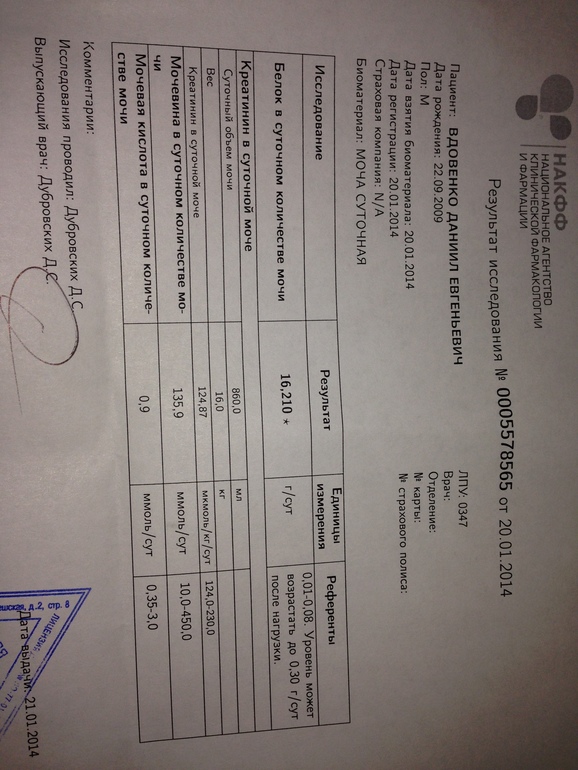Добрый вечер! Максим Викторович, возвращаюсь к своему вопросу. Мы в декабре сдали все анализы и сделали УЗИ. Анализы были в норме. По результатам проведенных исследований врач нам поставил цистит. Мы пропили антибиотики,часто бегать в туалет перестали. Но 4 дня назад ребенок снова стал без конца бегать в туалет. В субботу он мочился 17 раз. Я опять сдала все (кровь, общая и биохимия, общий анализ мочи и по Нечипоренко) анализы, пока готов только биохимия мочи. Меня безумно напугало нереальное количества белка. Скажите, пожалуйста, что это может быть и какие еще исследования необходимо пройти чтобы выявить причину нашего недуга. Заранее спасибо за ответ!!!!