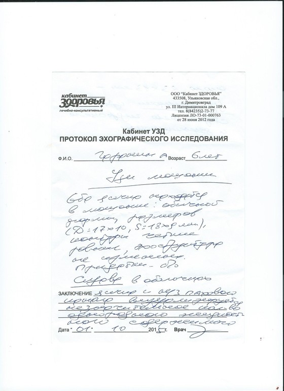 Здравствуйте ! Сделали новое УЗИ , может быть это описание поможет сделать вывод. Спасибо.: