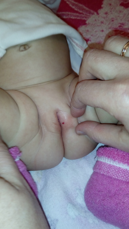нам 3 мес, появился волдырик между половых губ. Держится две недели уже. Имеет вид полупрозрачный. Что это? Пожалуйста подскажите своё мнение.