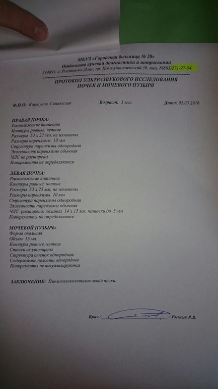 Добрый вечер Максим Викторович! Мы с сыном сейчас лежим в больнице (г.Ростов -на-дону. Урология #20, в нефрологическом отделении). Сами мы из г. Волгограда. Родился 25.11.2015. Но уже 3 января у малыша была температура 38,5..Орви врачь исключил...т.к.были праздники пришлось вызвать платного врача на дом. Сказали, что может из за стула(а он у нас был жидким..т.к.в роддоме после кесарево сечения кололи антибиотики)... Связи с переездом полное обследование после месяца пришлось отложить... В две месяца на УЗИ нам сказали,что у левой почки увеличены лаханка 1,1см чашечки 0,6 см..ОАМ был в норме.Педиатр назначил элькар...Но у малыша повысился аппетит и появился ужасный запах мочи..После чего ппереслали малышу элькар давать.. 19 февраля повторно сдавали анализы. Все показания были в пределах нормы... Но 28 февраля у малыша заметила изменения цвета мочи и прожилки крови..при этом повысилась температура... При поступлении в больницу в оам на все поле зрение лейкоциты и обнаружили кровь..Но следующий повторно сдали ОАМ. Кровь в моче не обнаружили, но лейкоциты на все поле зрение. На данный момент малышу поставили диагноз острый пиелонефрит,колят антибиотики 3 р в день.. Сделали 2 марта повторно УЗИ. Первая почка в норме, а у левой расширеная лоханка и чашечки... Врачь советует сделать рентгеноурографию...