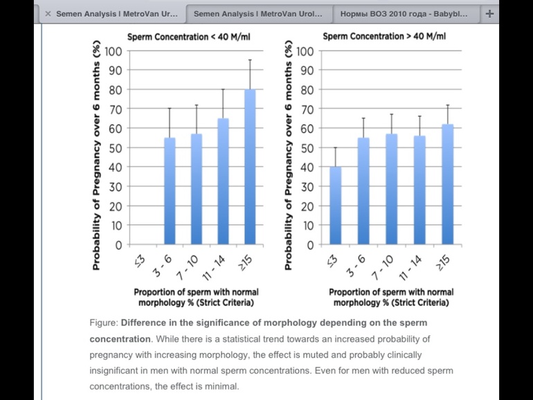И еще один вопрос про влияние морфологии на зачатие. На сайте одной канадской клиники , есть информация, о том что морфология не так уж важна, если концентрация хорошая. Там еще есть вот такой буклет по оценке спермограммы Не могли бы Вы прокомментировать эту информацию (особенно буклет)? Согласились бы Вы с тем, что там написано, исходя из Вашего опыта. Вопрос, как всегда у нас у женщин, жизни и смерти :) Спасибо большое!!!
