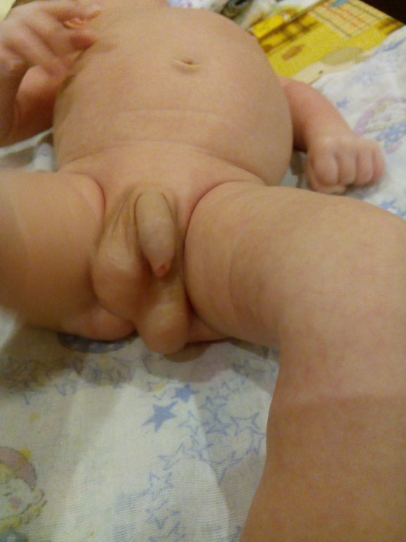 Расположение яичек у месячного ребенка!