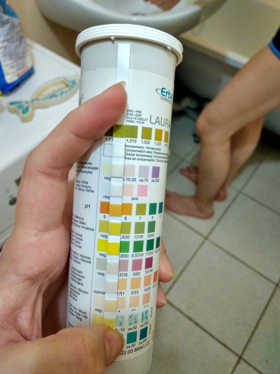 У меня имеются тесты для домашнего анализа мочи. 3 января собрала утреннюю среднюю порцию в стерильную баночку, после подумывания теплой водой без мыла. Вроде бы результат удовлетворительный. Фото прилагаю.