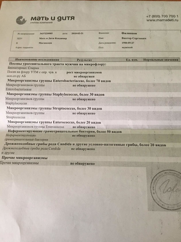 Я это понимаю, все необходимые анализы муж сдал, гормоны в норме, никаких воспалительных заболеваний по УЗИ не выявлено, ПЦР все отрицательные, посев тоже делали, там ничего не выявлено, вот мне и интересно что же теперь делать?