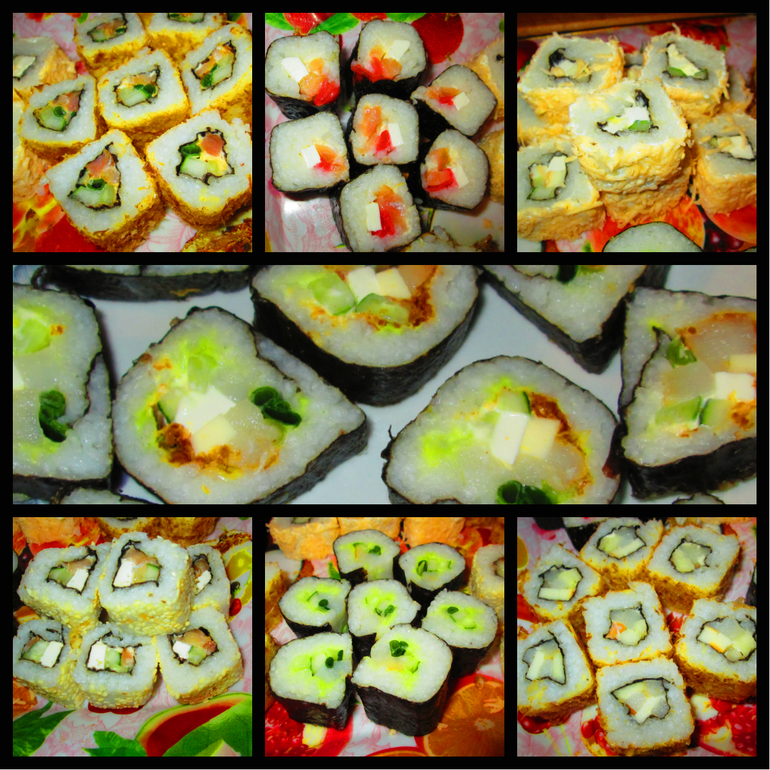 Поделитесь пожалуйста рецептами начинок для суши, чтобы рационально закупаться. Чтобы было оптимально по затратам и разнообразие хоть какое-то в роллах было. Какие комбинации вы делаете?:)