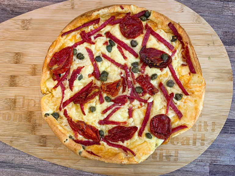 Пицца у нас бывает очень часто, рука набита) Но раньше я ее раскатывала скалкой, а в последнее время просто растягиваю руками. Очень отличается, я даже не думала, что это имеет значение. Она получается воздушная.