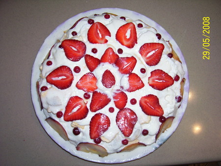 Поставить на ночь в холодильник, с утра украсить тортик ягодами и фруктами.