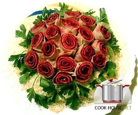 красиво! а на последней фотографии- что за салат и из чего "розочек" накрутили?