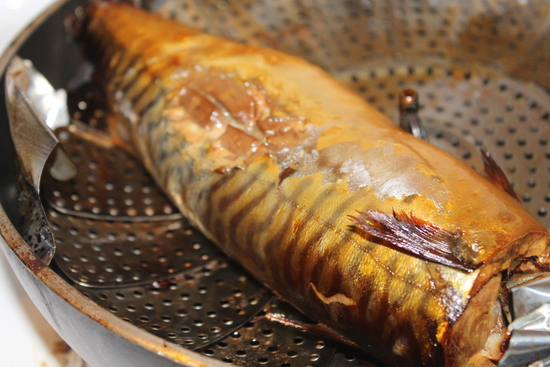 На неё кладете посоленную рыбку. Накрываете крышкой и пусть минут 30 поготовится. Юля делала сёмгу. У меня было филе трески. Сами ловили, потрошили и замораживали. Хочу сделать салатик из рыбы, риса, лука, яиц и майонеза.