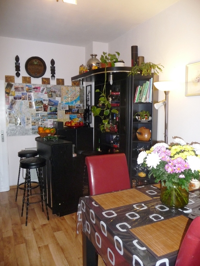 Это у нас в Канаде съемная квартира, щас тут живем, гостиная слитная с кухней, у них в основном везде так в квартирах небольших. Только это зимние фотки, а сейчас обеденный стол у нас другой, намного более подходящий, темный, в цвет кухни и прямоугольный, и сразу другой вид у квартиры. В москве в квартире у нас все не так, но фоток нет у меня.
