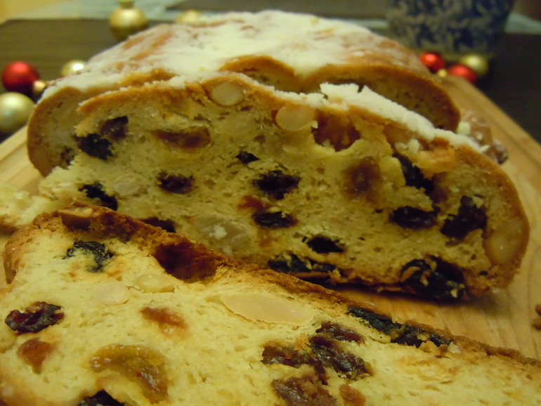 Новогодние и рождественские блюдаИспёкся этот замечательный рождественский хлебушек недели 3 назад. Дело в том, что его нужно выстаивать. И вот что было на столе 24 декабря. Хлеб-кекс в меру сладкий с похрустывающими на зубах орешками и тонким ароматом сухофруктов и отголоском коньяка.