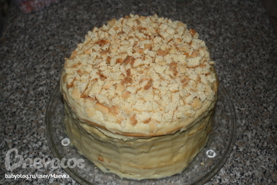 Сверху корж. Я его покрошила и посыпала на торт.