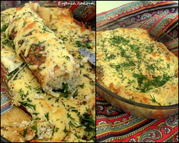 Фаршированные блинчики с сыром, курицей и зеленью