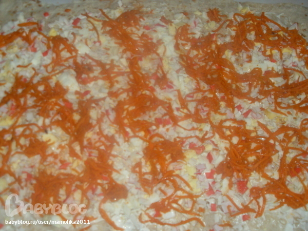 5-ти минутные блюдаПонадобится лаваш,яйца,крабовые палочки,морковка по корейски и майонез,зелень по желанию.