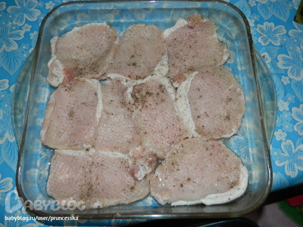 Свинину отбить,посолить,поперчить,на дно масло.