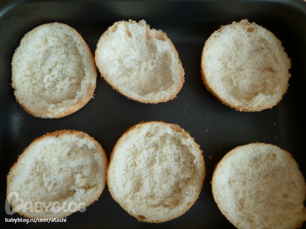 ДЕЛАЮ ТОЖЕ САМОЕ.ТОЛЬКО У БУЛОЧКИ СРЕЗАЮ МАКУШЕЧКУ,ДА ПОЛУЧАЕТСЯ ОЧЕНЬ ВКУСНО!!!!!!