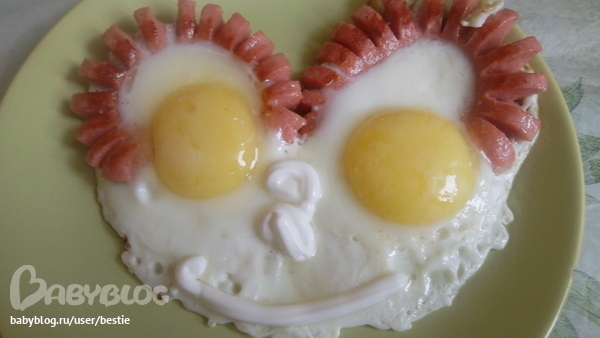 5-ти минутные блюдадевочки подсмотрела (здесь или нет не помню) такую штучку из сосиски....и зделала сыну завтрак...получился какой то гоблин...сын был в восторге...теперь ему частенько делаю...