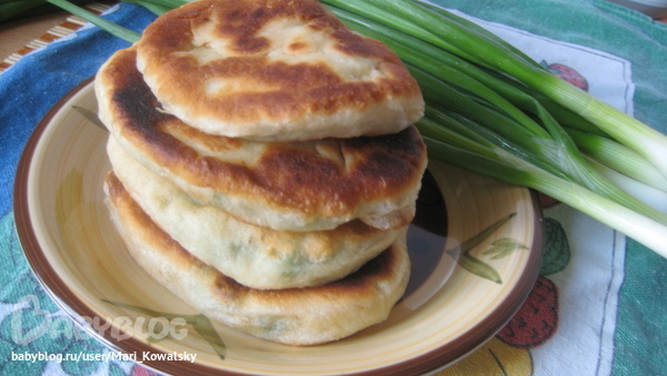 Пироги, пирожки, булочкиРешила сделать не пирожки, а лепешечки. Жарила на сковороде в масле. Половина начинки- мятая картошка, половина- зеленый лук и пучок укропа.