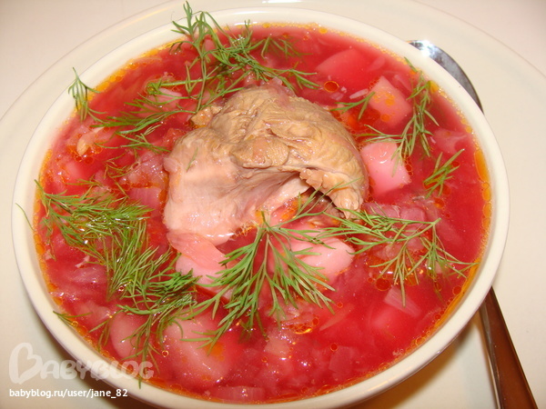 Ставим вариться бульон из индейки. Чистим и режем кубиками картошку, трем свеклу на терке. Добавляем это в бульон. Где-то за полчаса до готовности шинкуем и добавляем капусту. Раз огребаем подсолнечное масло на сковороде, мелко режемлука, можно один чеснок выдавить и морковку небольшую потереть ( у меня не было просто)), все это слегка об жарить в масле, порезать мелко помидор и тоже обжарить. Все это добавить в борщ. И готовить еще мин 15. Вроде, все! Приятного аппетита!!!:)