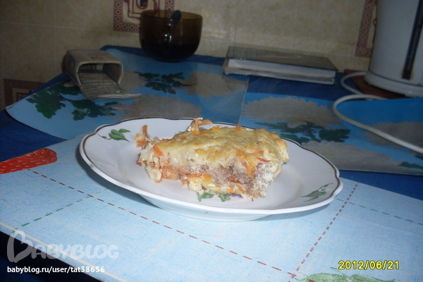 Запеканка: наверное по правилам макароны надо было сварить, фарш обжарить, овощи обжарить, но мне было некогда. И лень.