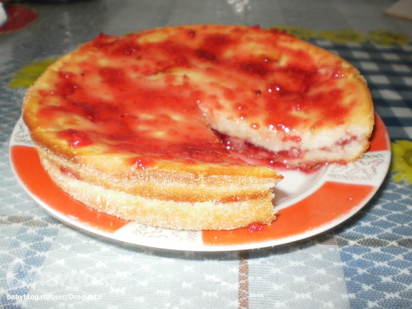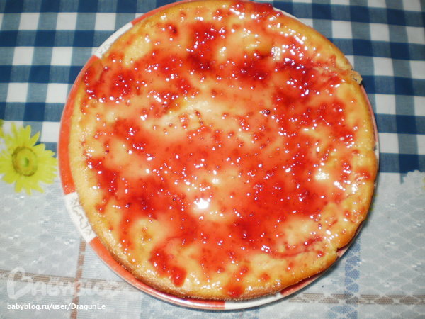 Испекла бисквит с яблоками, разрезала пополам , внутри и снаружи смазала малина + сахар . Получилось - пальчики оближешь !!! ))) Только один нюанс - нужно брать плоскую тарелку, чтобы варенье не вытекало ...