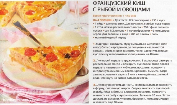 Василиса в Кулинарное сообщество 13 лет французский киш с рыбой и овощами Блюда из рыбы и морепродуктов рецепт из Бурды Посмотрите еще 20 записей на эту тему Отменить Ответить Margo Спасибо за рецепт! 16.07.2012 Ответить Василиса ОЧЕНЬ КРАСИВО ПОЛУЧИЛОСЬ !! 16.07.2012 Ответить Margo Спасибо! И вкусно очень! 16.07.2012 Ответить Кэшуня Ням ням обожаю киши!!!! Спс за новенький рецепт! 08.07.2012 Ответить Ируська как красиво и аппетитно!) 08.07.2012 Ответить Василиса спасибо 08.07.2012 Ответить Оксана Мммммммммм как вкусно выглядит пирог и красиво!!!!!!!!!!!! 08.07.2012 Ответить Василиса спасибо 08.07.2012 Ответить Анна (Незабудка) Делаю такие постоянно, и с рыбой, и с ветчиной-луком-грибами. Действительно невероятно вкусный пирог! А у Вас еще и супер-красивый! 08.07.2012 Ответить Василиса Спасибо. 08.07.2012 Ответить Кальмары в сметане. Треска, запеченная с помидорами и моцареллой Чаты Беременных Выберите чат: Январята-2026 Февралята-2026 Мартята-2026 Апрелята-2026 Майчата-2026 Июнята-2026 Июлята-2026 Августята-2026