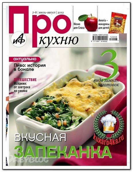 Доступное по цене и качественное по исполнению кулинарное издание »Про кухню» предназначено в первую очередь молодым энергичным домашним хозяйкам, которые с удовольствием, часто и много проводят свое время в святая святых любого жилища, оазисе семейного уюта — на кухне. Выпуски журнала доступно и красочно освещают технические новинки кухонная бытовая техника и утвари, свойства и качество продуктов, технологию их приготовления, , историю и происхождение, ну и конечно же великолепные фоторецепты изысканных блюд, которые украсят ваш повседневный и праздничный стол.