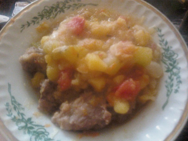 Наверняка многие готовили так. Я просто кинула в мультиварку мясо и овощи: капуста,картошка,кабачки,лук,помидоры,в общем все подряд и поставила режим "тушить",получилось вкусно...пальчики оближешь))))