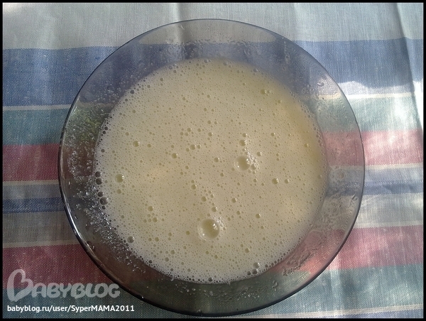 3) Берём набухшую манку и добавляем яйца разбавленные с сахаром.