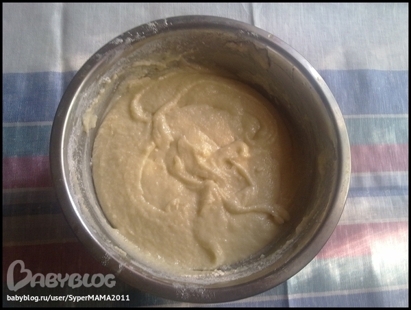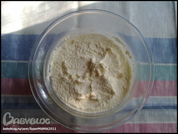 4) Добавляем разрыхлитель и муку, замесить густое тесто.