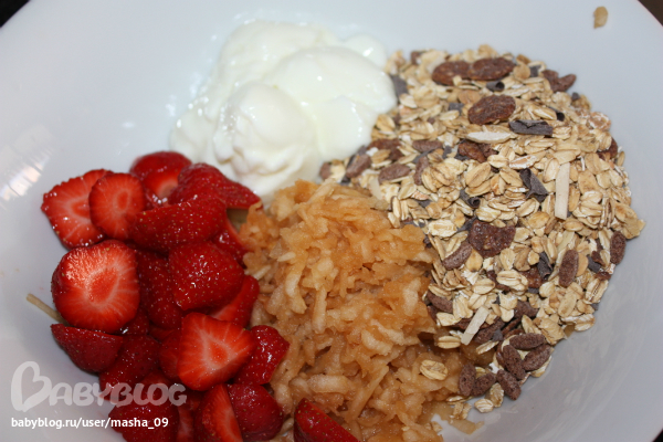 тщательно перемешиваем и мюсли превращаются.... мюсли превращаются в элегеантную кашу.
