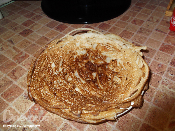 Блины, оладьи, лепёшкиБлинные кружева. Конечно ничего серъезного, но хотелось больше порадовать своего старшенького. Он любит у меня блинчики. Вам понадобится бутылочка, чтобы сделать блинные кружева).