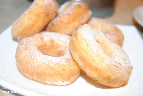 Ооооочень воздушные и вкусные получились, хотя тесто у меня поднялось максимум в 1,5 раза, а должно в 2-3 раза, и еще я брала сухиа дрожжи, а не пресованные, как в рецепте. Здесь рецепт с пошаговыми фотографиями, кстати, когда я вырезала из теста пончики, то не стала ждать еще 20 минут(чтобы они еще поднялись), а сразу жарила, они у меня в процессе жарки поднялись.