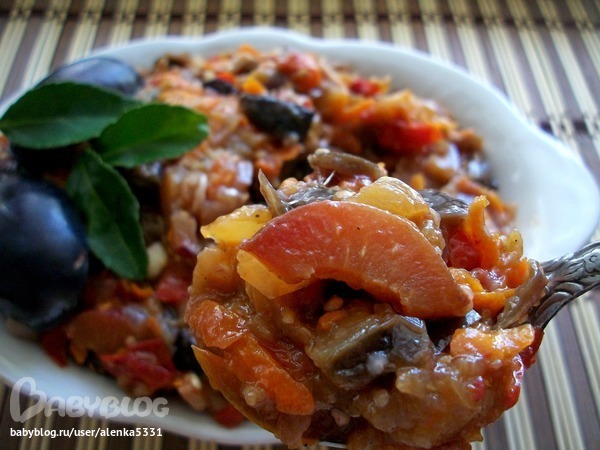 Блюда из овощей"Соте из баклажанов с черносливом" - летнее, ароматное блюдо, которое можно есть и зимой, если закатать. Готовится оно просто, а получается очень вкусным! Его можно подать к столу, как основное блюдо, так и виде гарнира к блюда из мяса.