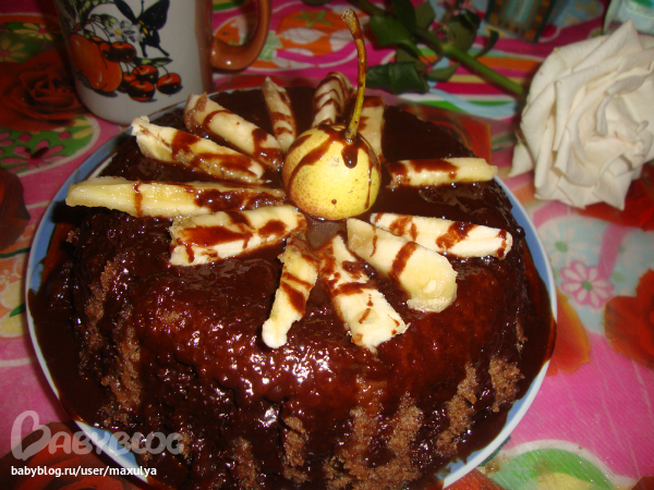 Рецепт шоколадной глазури:3 ст.л какао, 3 ст.л молока, 6 ст.л сахара, 1 ст.л масла, перемешать, довести на медленном огне до кипения и сразу заливать.