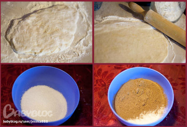 8. Корицу смешать с сахаром и небольшим количеством молока, смазать тесто получившейся смесью.