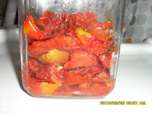 Мммм, сделала себе месяц назад баночку. 2 кг "сливок" привратились в маленькую баночку помидорок вяленных.