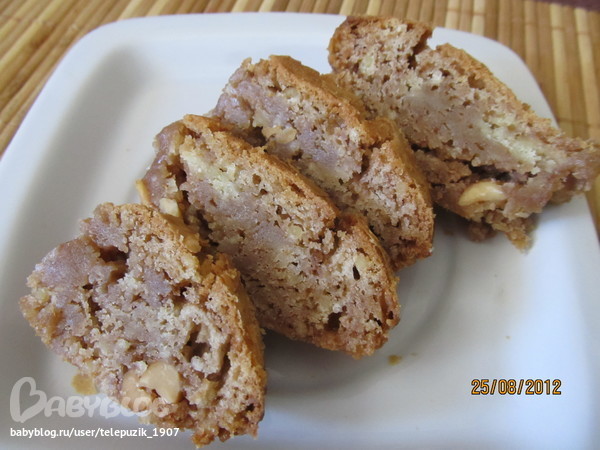 взбить до пены 2 яйца и постоянно помешивая, тоненькой струйкой влить в масляную смесь, добавить 300 гр муки, 1 чл разрыхлителя, 100 гр солёного арахиса и вылить тесто в форму застеленную бумагой для выпечки слоем около 2 см, в процессе выпечки тесто увеличивается в два раза, потом опадает. Поставить в горячую духовку на 180 гр на 35 мин. Потом охладить и холодным нарезать на квадраты не вынимая из формы, поставит в холодильник на 2-3 часа. Кушать только холодным. Очень вкусненько.