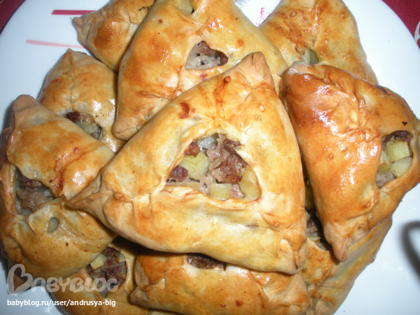 Начинку на тесто лучше выкладывать в форме равнобедренного треугольника.