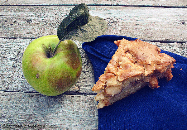Смешайте обе смеси и вбейте яйца. Тесто должно быть густым. Половину теста вылейте в форму, выложите слой яблок и закройте остальным тестом. Выпекайте около 1,5 часов до золотистой корочки.
