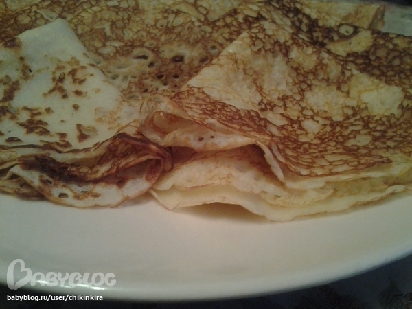 Блины, оладьи, лепёшкиПонадобится: 4 яйца,2 ст молока,1 ст муки,соль,2 ст ложки сахара,100 г сливочного масла