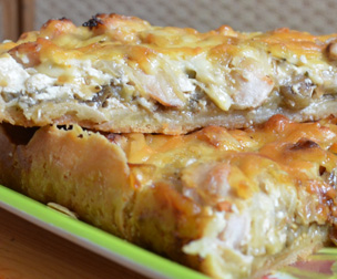 Для заливки: 2 яйца, сливки 10% 250 гр и 100 гр.сыра